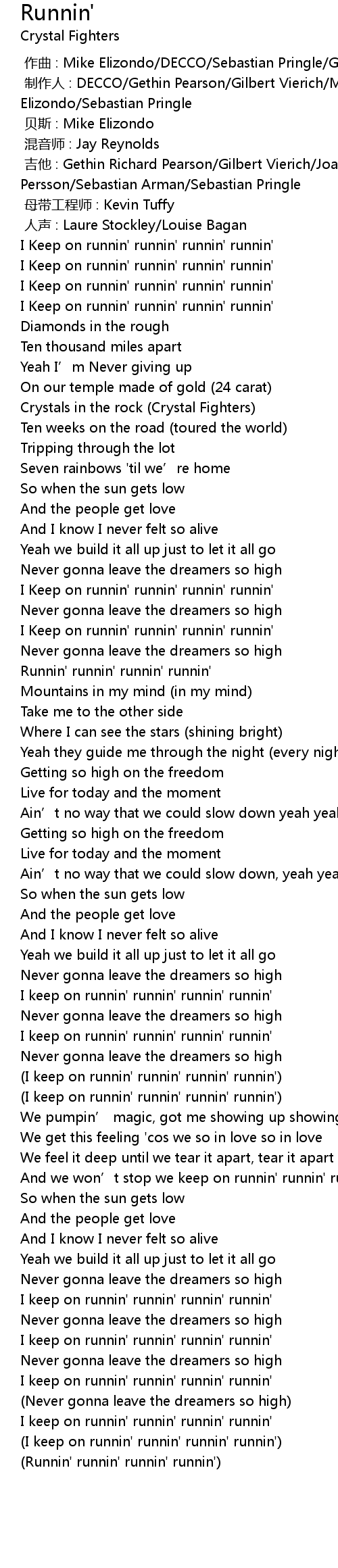 | [02:35.47] | And we won’t stop we keep on runnin' runnin' runnin' runnin' |
