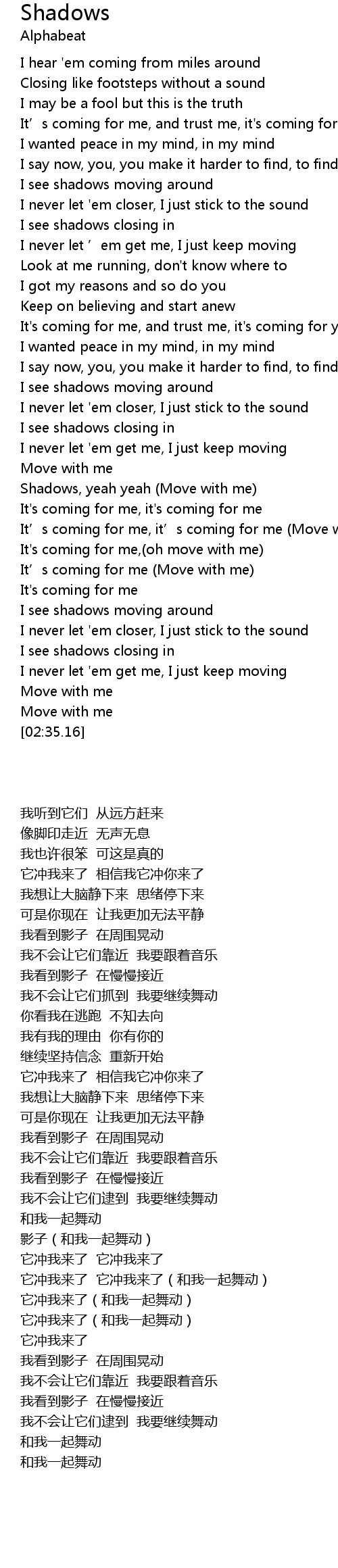 | [01:44.76] | Shadows, yeah yeah (Move with me) |