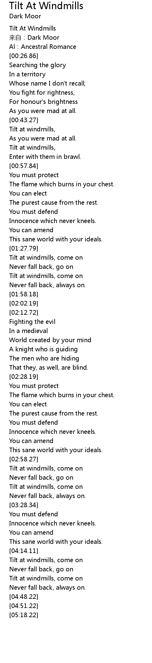 | [00:00.00] | Tilt At Windmills |