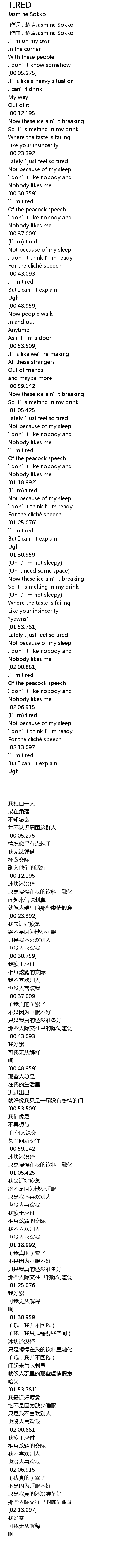 | [00:37.409] | (我真的)累了 |