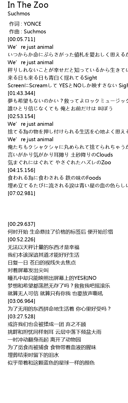 | [04:01.114] | 一时冲动翻身而起 离开了动物园 |