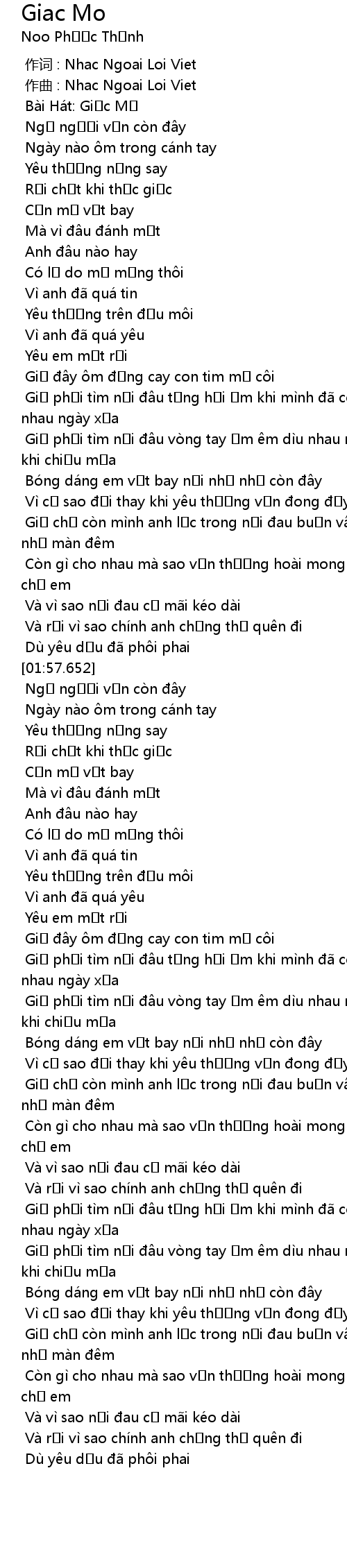 | [00:01.000] | 作曲 : Nhac Ngoai Loi Viet |