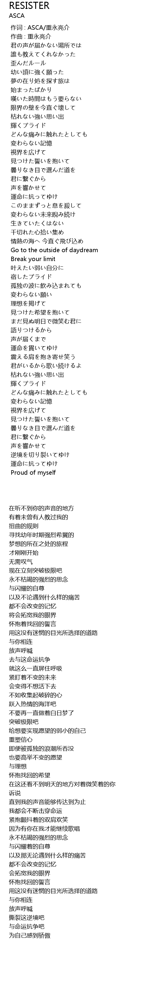 | [00:00.000] | 作词 : ASCA/重永亮介 |