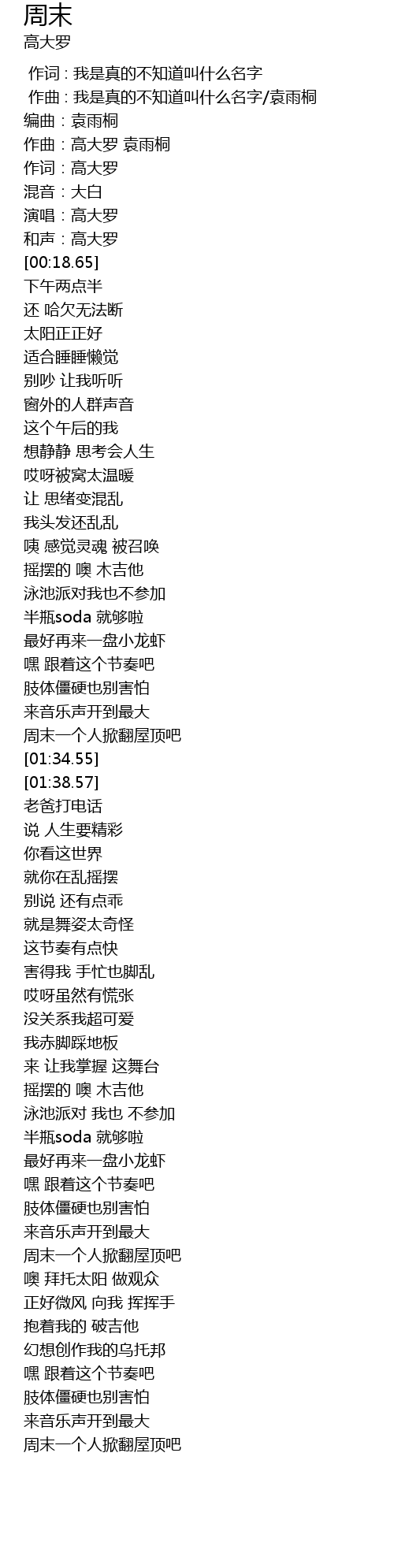 | [02:59.950] | 周末一个人掀翻屋顶吧 |