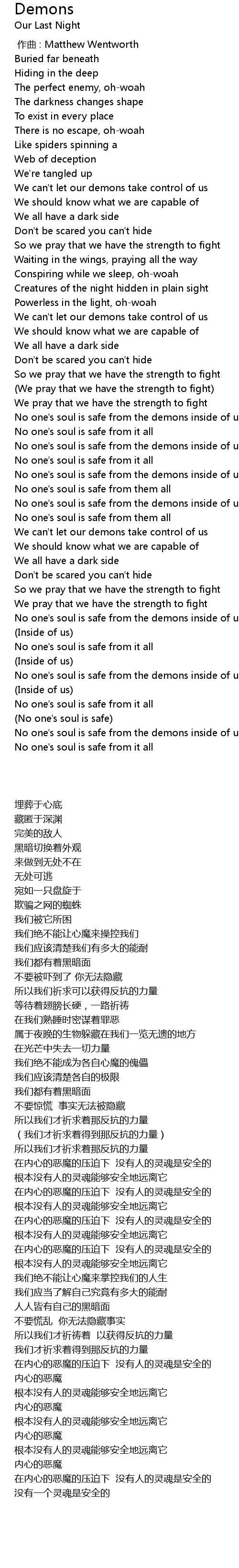 | [03:23.63] | No one' s soul is safe from the demons inside of us |