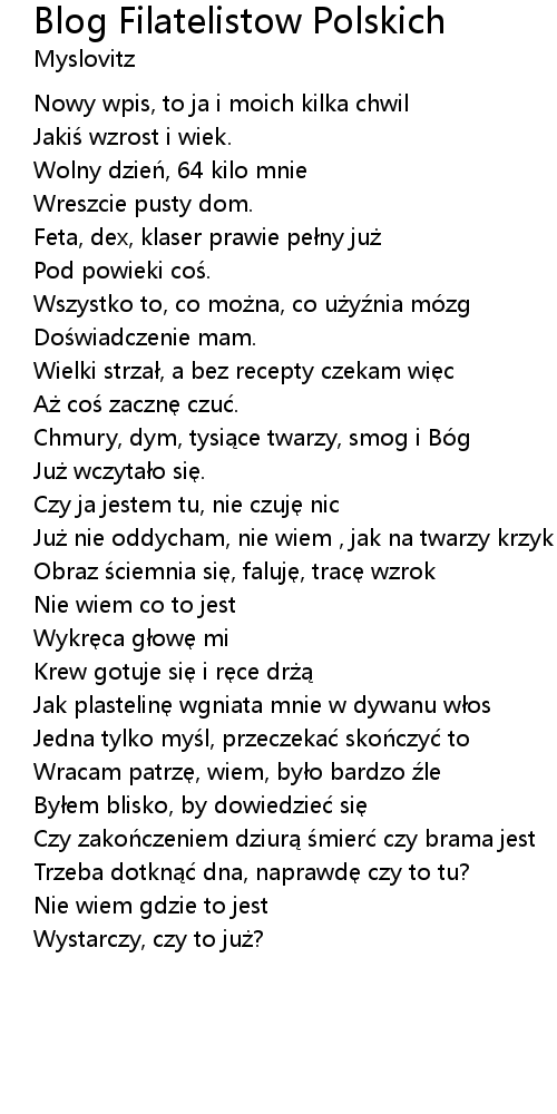 | [02:16.37] | Chmury, dym, tysi ce twarzy, smog i Bo g |