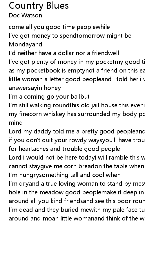 I've got plenty of money in my pocketmy good time friends are aroundbut as soon as my pocketbook is emptynot a friend on this earth can be foundi wrote my little woman a letter good peopleand i told her i was in jailshe sent me back an answersayin honey |