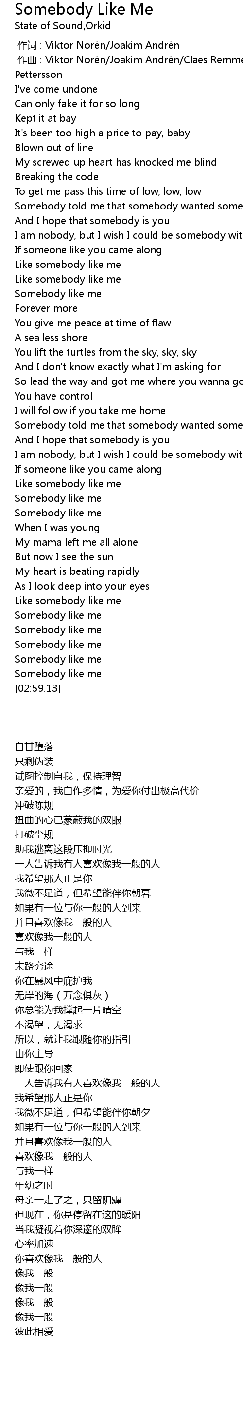 | [01:34.15] | Somebody told me that somebody wanted somebody like me |