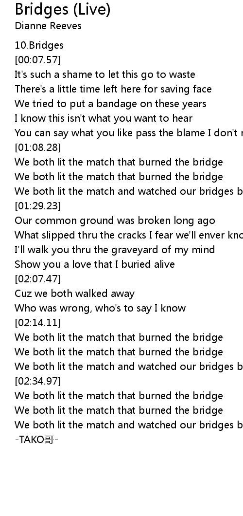 | [03:22.00] | We both lit the match and watched our bridges burn down |