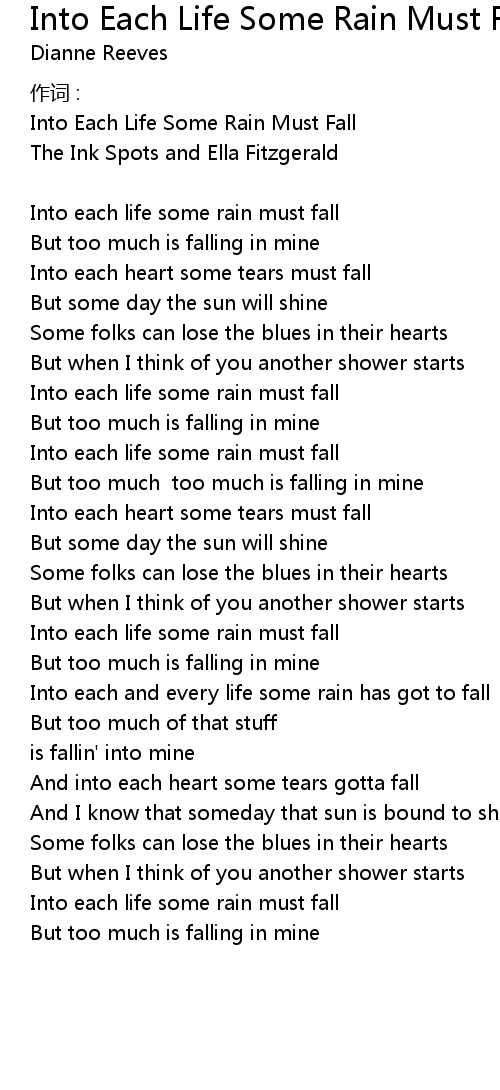 | 歌曲 | Into Each Life Some Rain Must Fall |