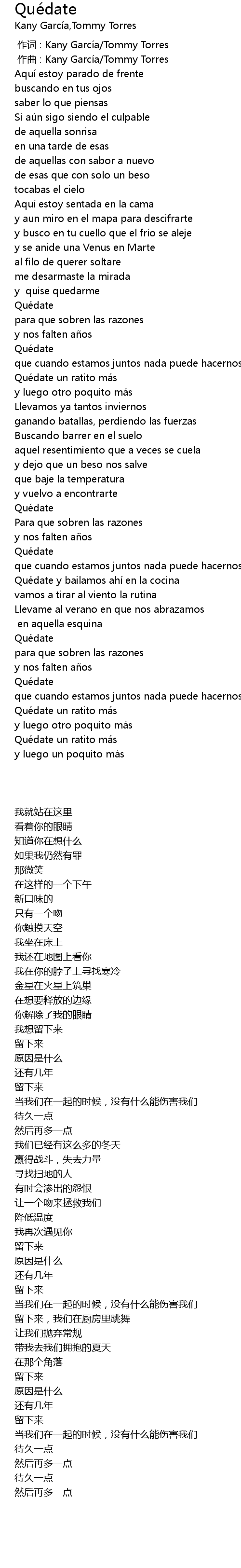 | [00:00.000] | 作词 : Kany García/Tommy Torres |