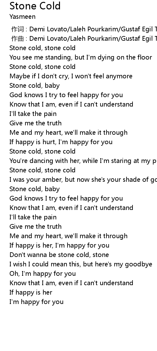 | [00:21.34] | Stone cold, stone cold |