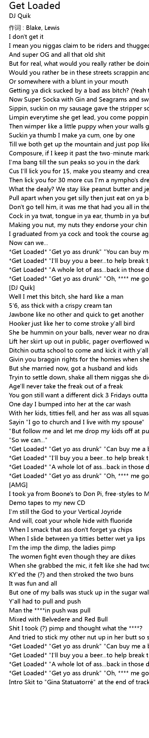 | *Get Loaded* "Get yo ass drunk" "Oh, **** me good baby" | |