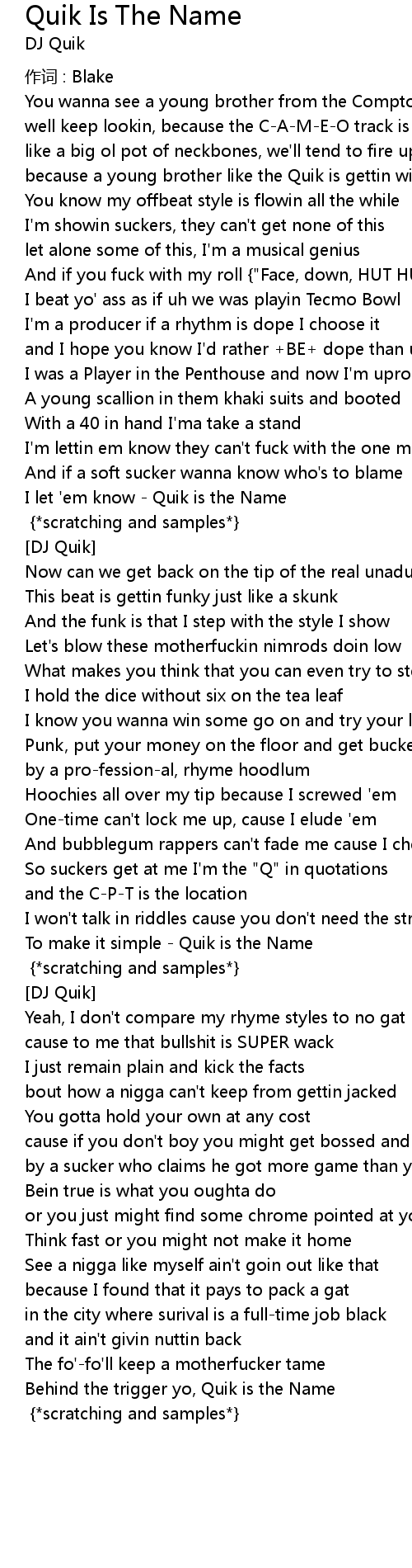 | 歌曲 | Quik Is The Name |