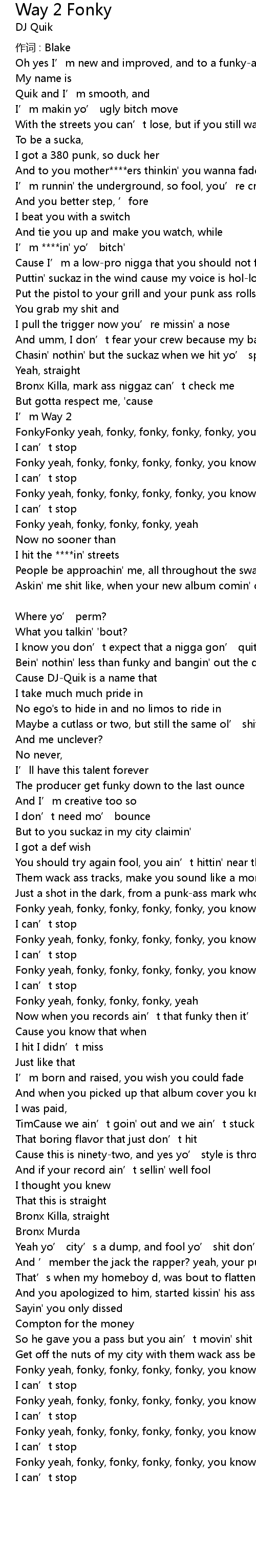 | Get off the nuts of my city with them wack ass beats that ain’t fonky | |
