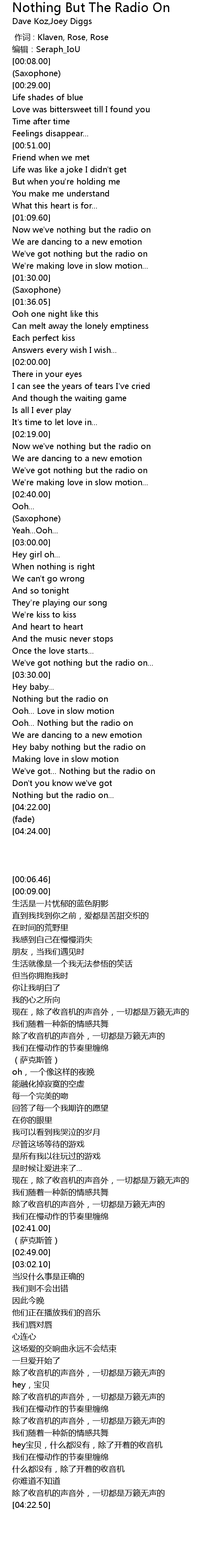 | [03:55.46] | Hey baby nothing but the radio on |