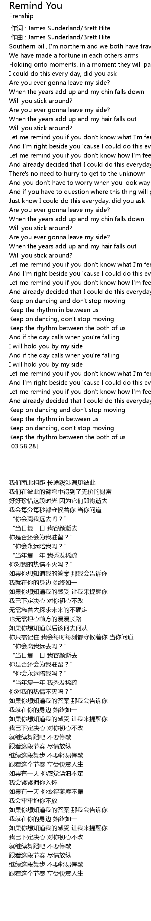 | [03:18.44] | Let me remind you if you don' t know what I' m feeling |