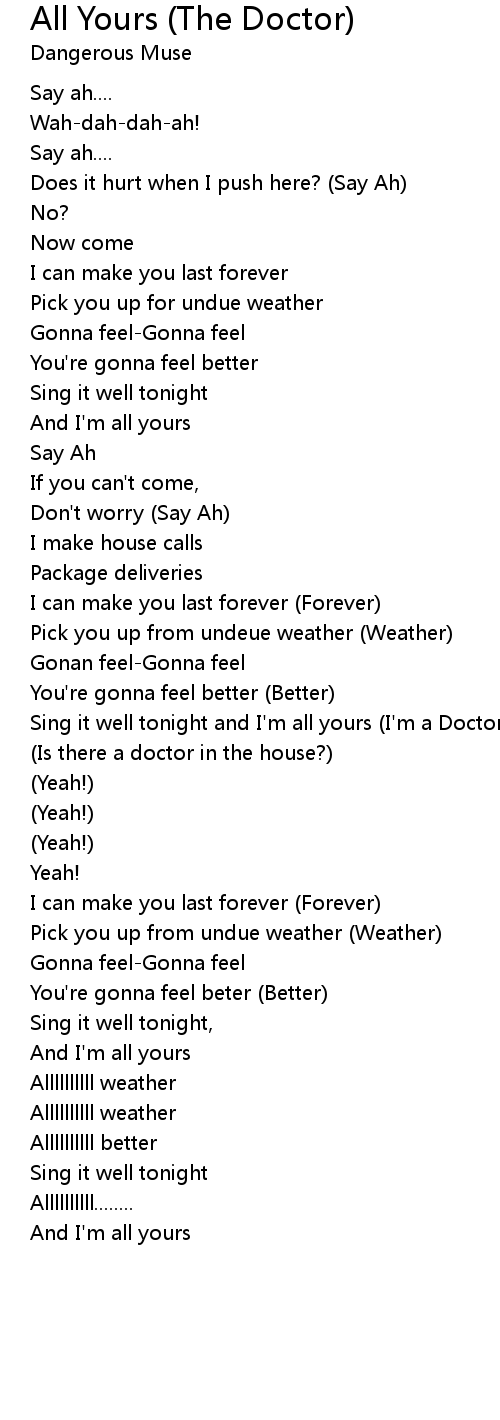 Sing it well tonight and I'm all yours (I'm a Doctor) |