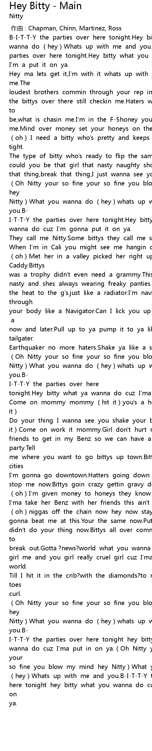 | [00:58.181] | They call me Nitty.Some bittys they call me shugga daddy. |