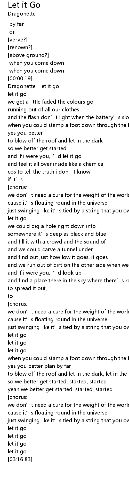 | [00:55.67] | we don’t need a cure for the weight of the world |