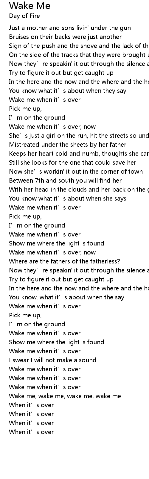 | Wake me, wake me, wake me, wake me | |