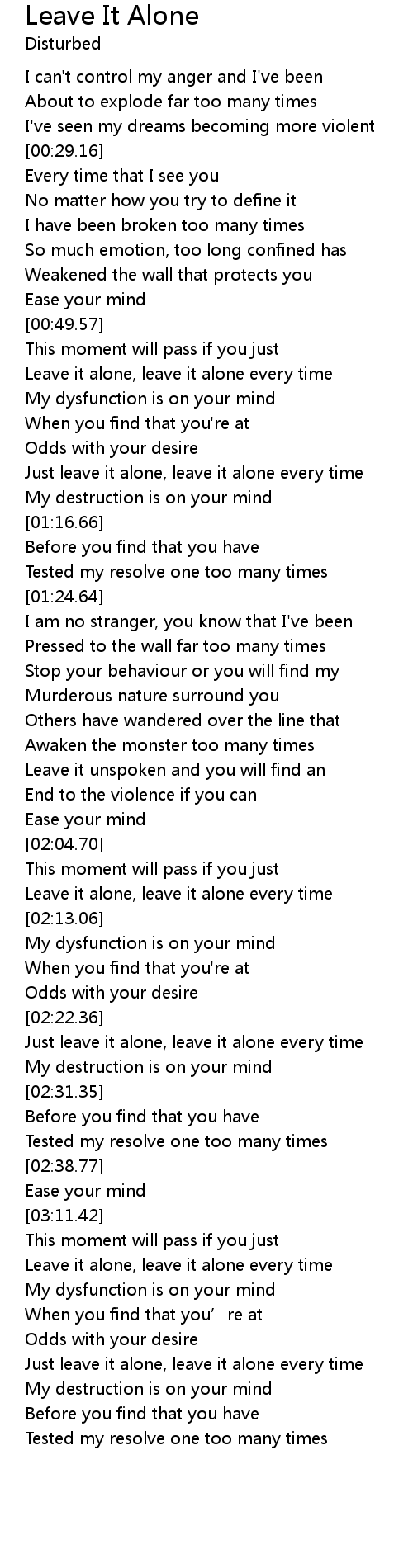 | [03:16.66] | Leave it alone, leave it alone every time |