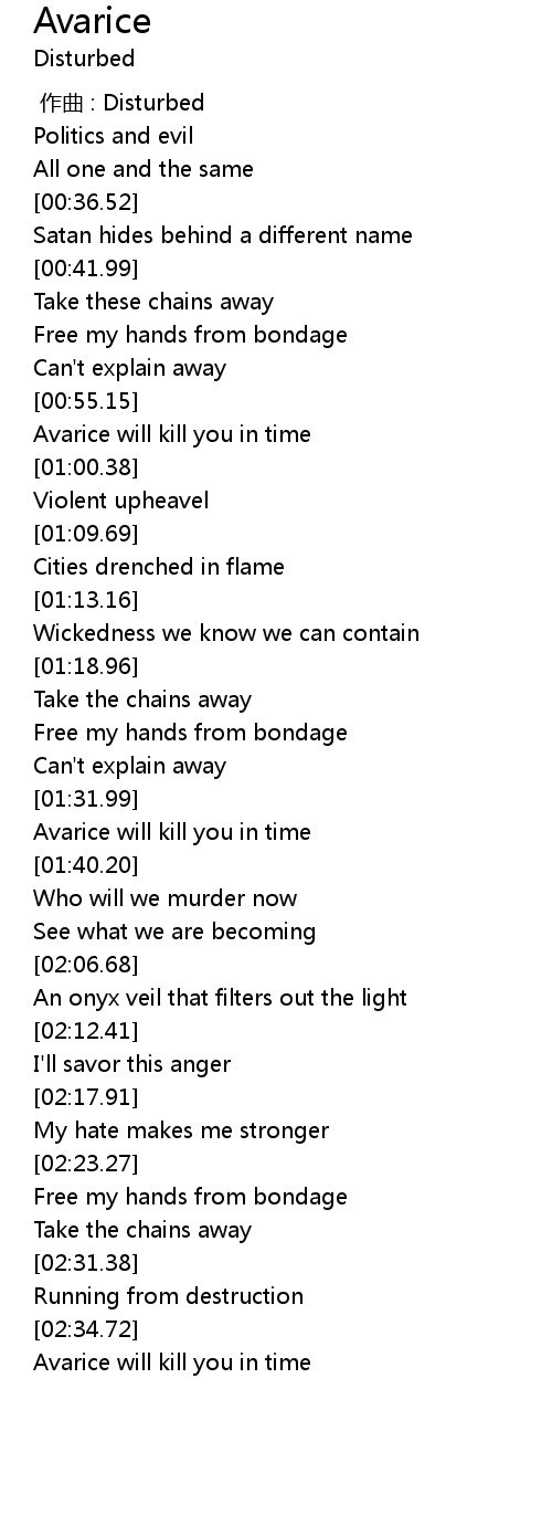 | [02:35.48] | Avarice will kill you in time |