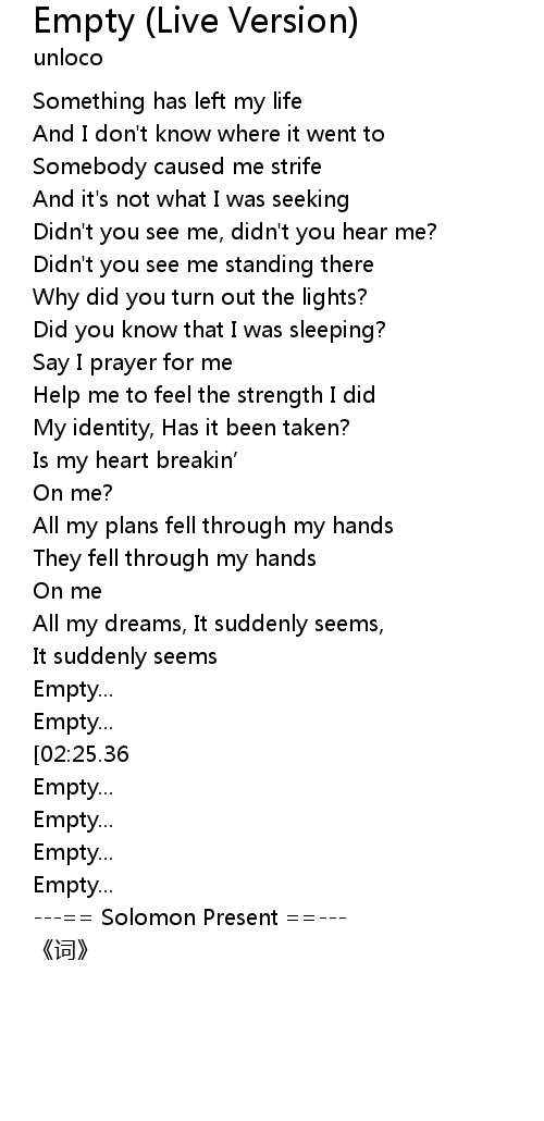 | [02:09.88][02:25.36] | Empty... |