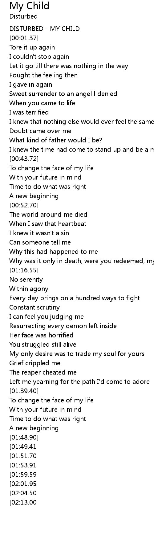 | [02:52.26][02:04.50] | Why was it only in death, were you redeemed, my child |