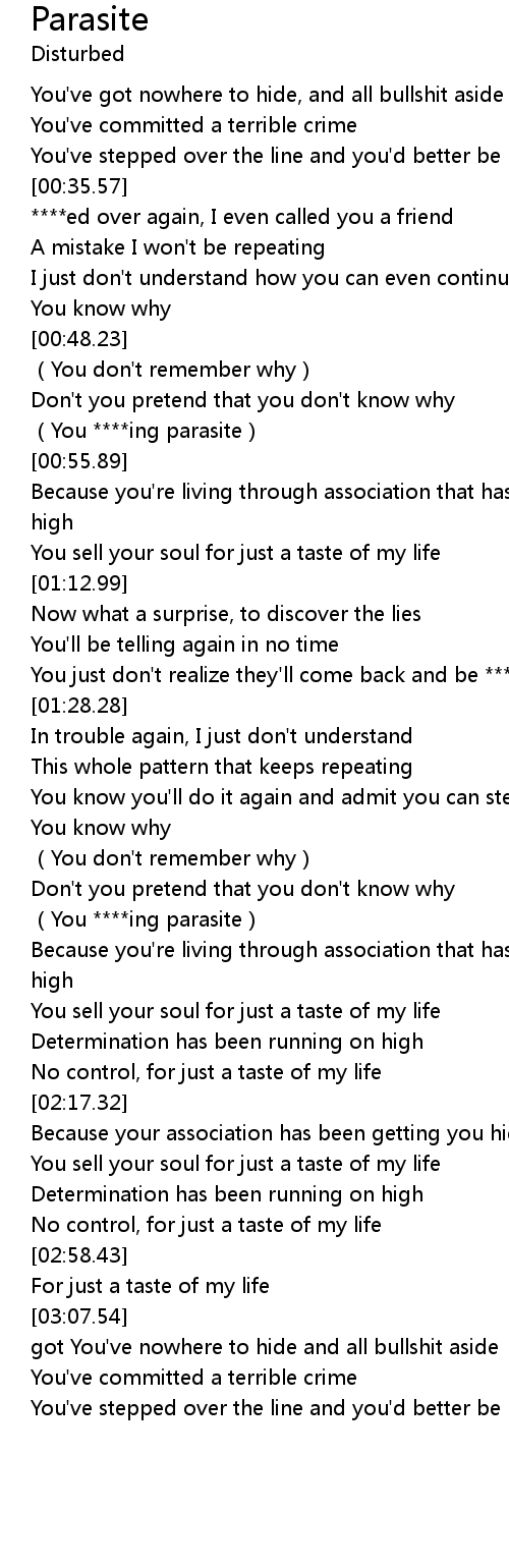 | [00:54.77] | (You ****ing parasite) |