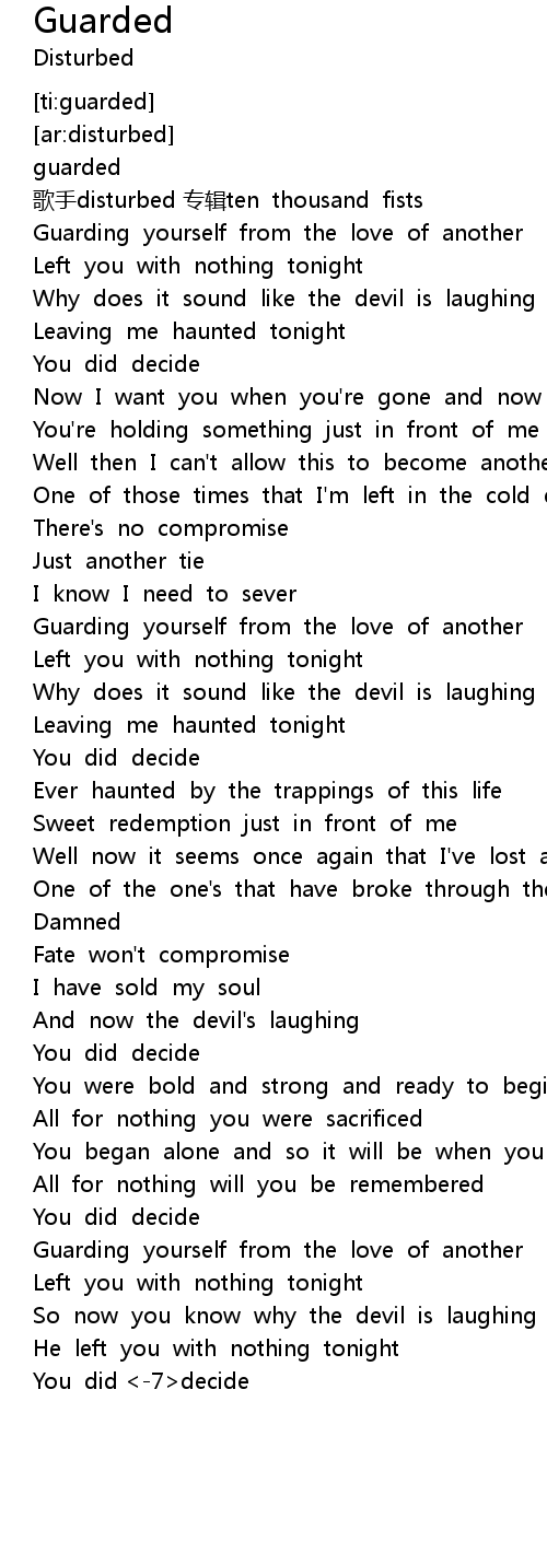 | [00:01.37] | 歌手disturbed 专辑ten thousand fists |