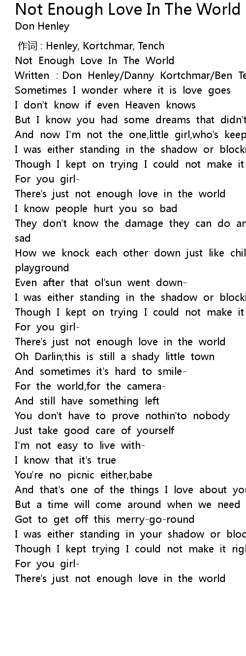 | 歌曲 | Not Enough Love In The World |