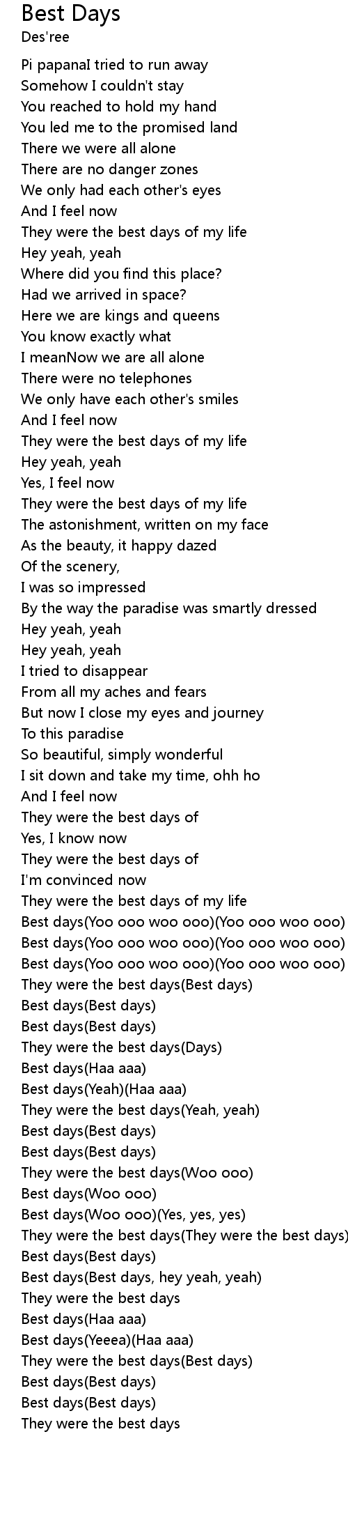 Best days(Yoo ooo woo ooo)(Yoo ooo woo ooo) |