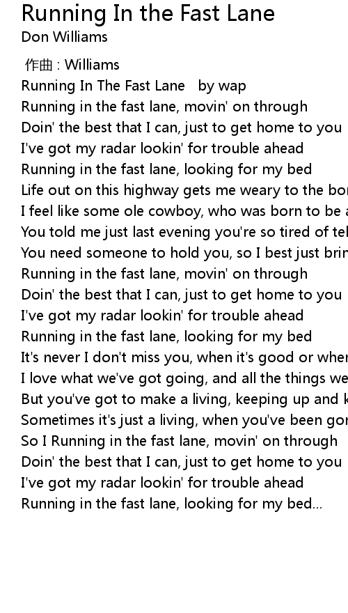 | [03:13.38] | Running in the fast lane, looking for my bed... |