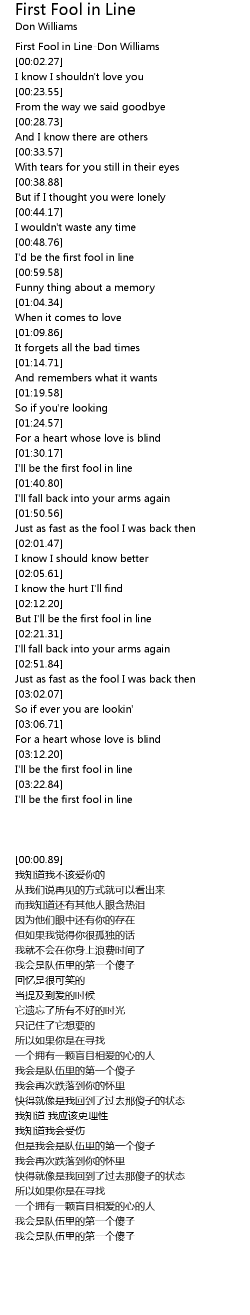 First Fool in Line-Don Williams |
