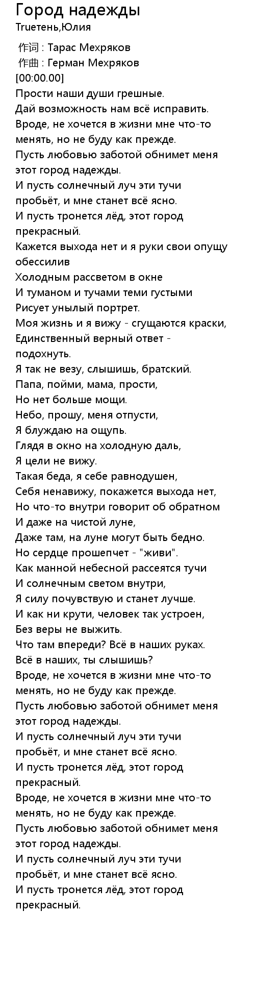Город надежды 歌词