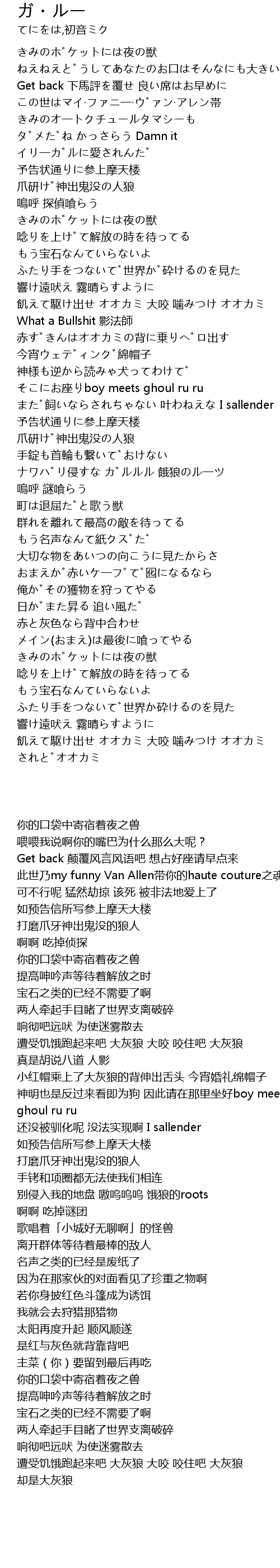 | [01:53.772] | 神明也是反过来看即为狗 因此请在那里坐好boy meets ghoul ru ru |
