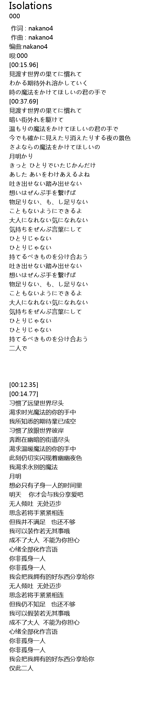 | [00:18.00] | 見渡す世界の果てに慣れて |