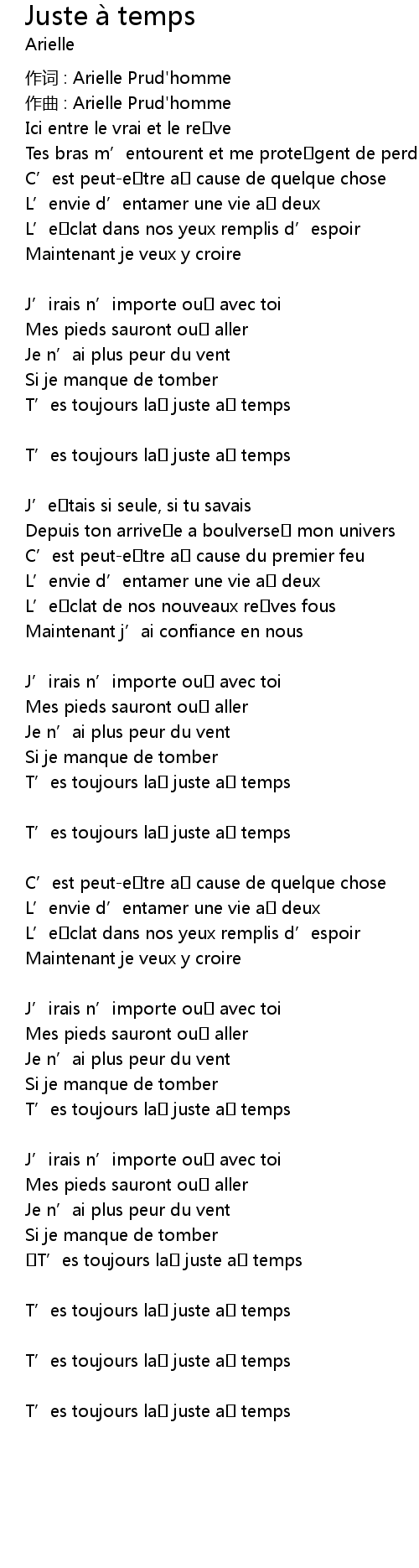 | 作词 : Arielle Prud'homme | |
