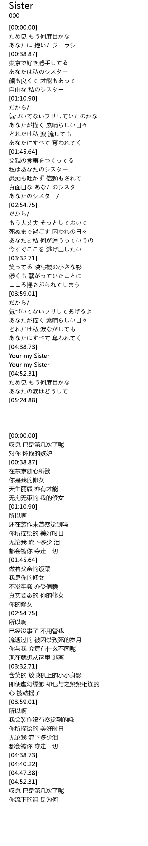 | [00:49.41] | あなたは私のシスター |