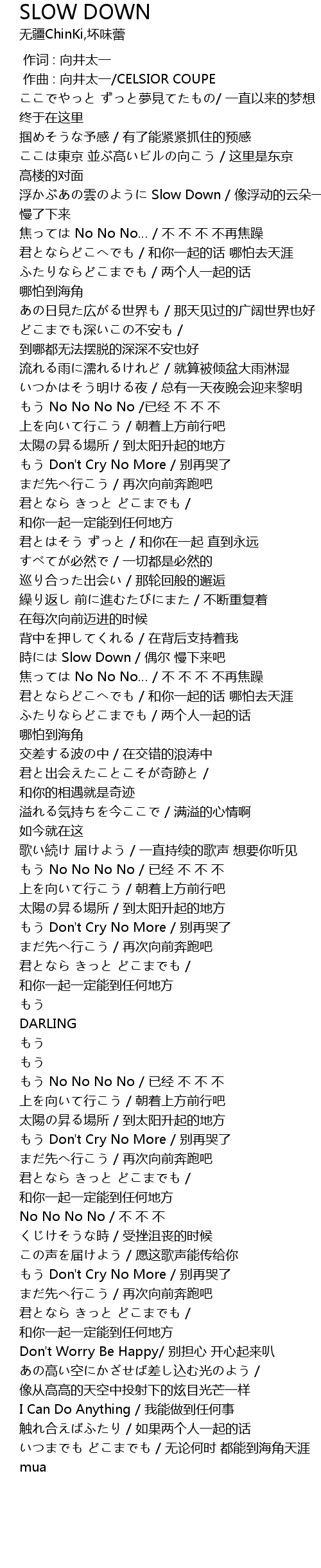 | [01:43.580] | shi Slow Down ou er man xia lai ba |
