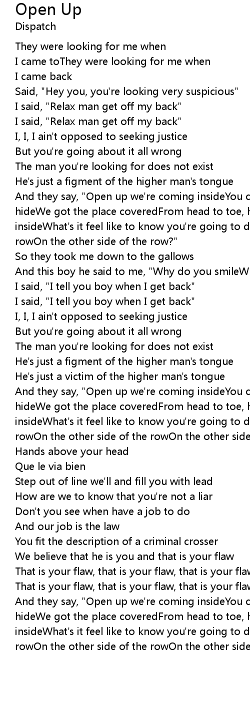 And they say, "Open up we're coming insideYou can't run so you may as well hideWe got the place coveredFrom head to toe, head to toe""Open up we're coming insideWhat's it feel like to know you're going to dieOn the other side of the rowOn the other side of the rowOn the other side of the row?"