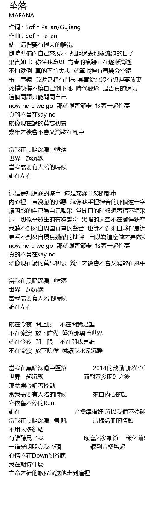 | 不在流淚 放下防備 墬落那黑暗世界 | |