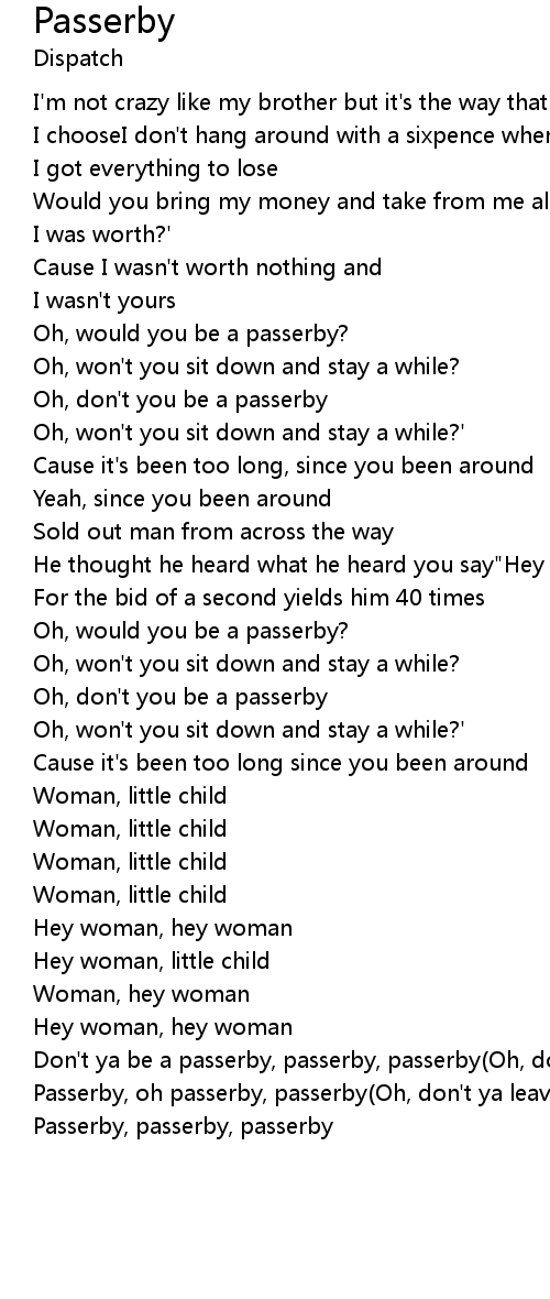 Passerby, oh passerby, passerby(Oh, don't ya leave me alone) |