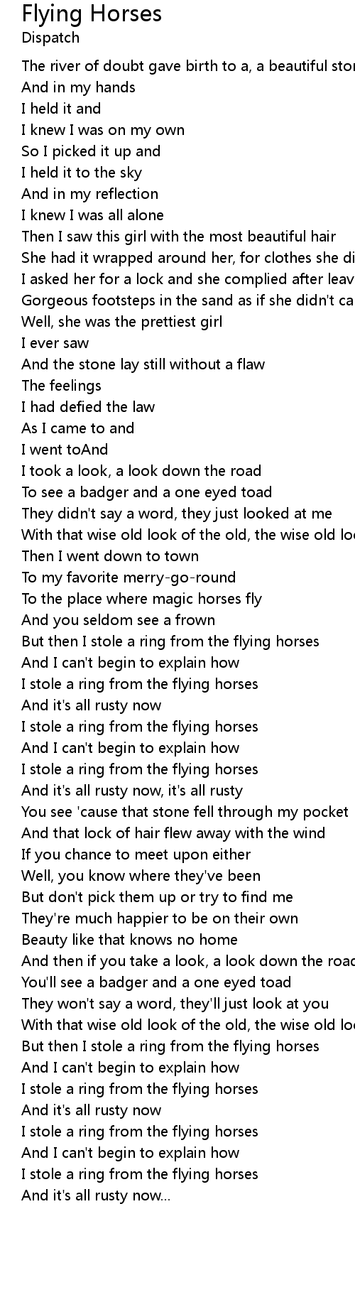 But then I stole a ring from the flying horses |