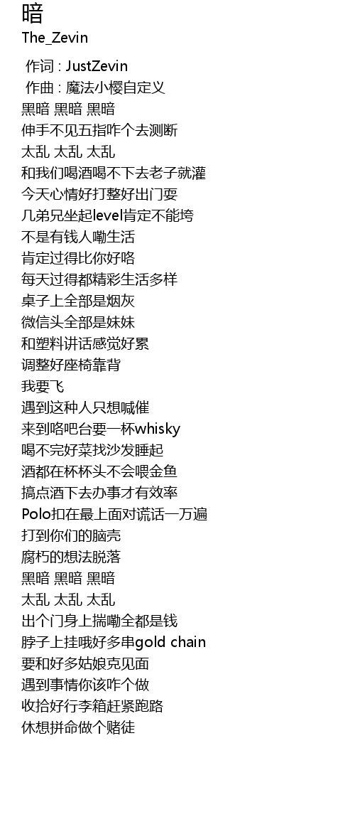 | [00:00.000] | 作词 : JustZevin |