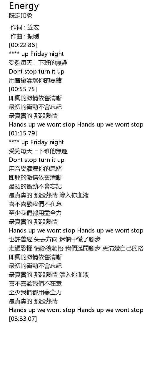 | [03:26.61] | Hands up we wont stop Hands up we wont stop |