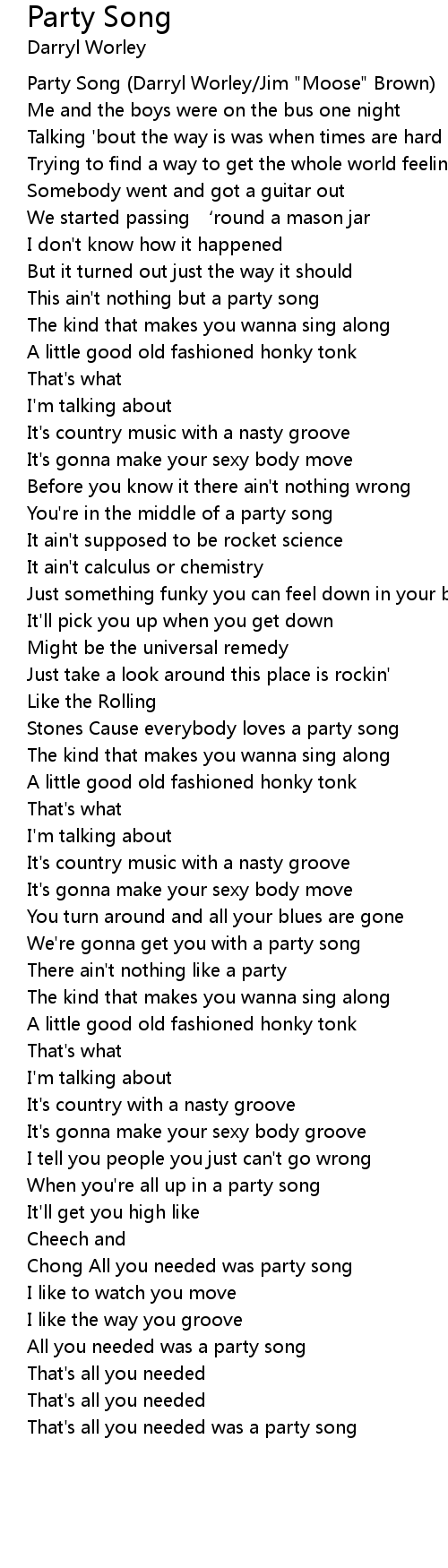 | Party Song (Darryl Worley/Jim "Moose" Brown) | |