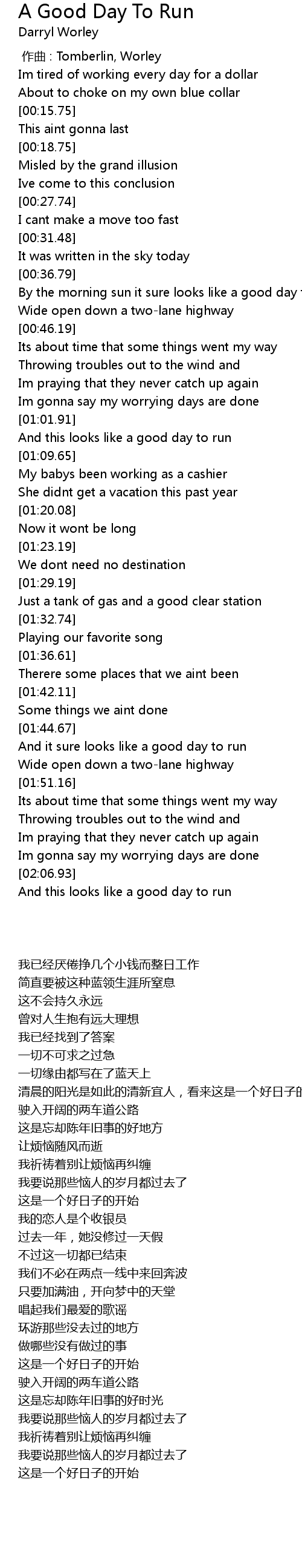 | [01:45.67] | And it sure looks like a good day to run |