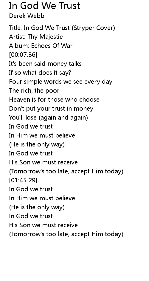 Title: In God We Trust (Stryper Cover) |